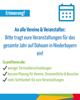 Bitte tragt eure Veranstaltungen für das gesamte Jahr auf Dahoam in Niederbayern ein!